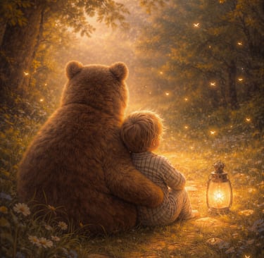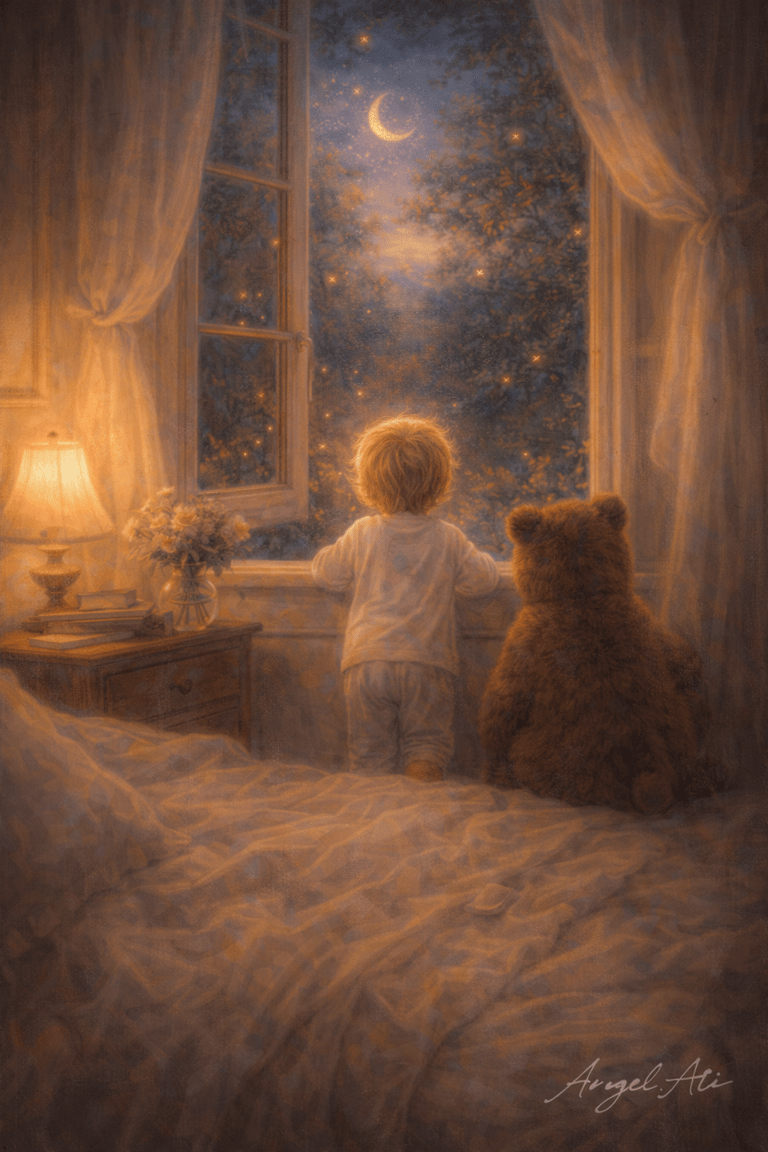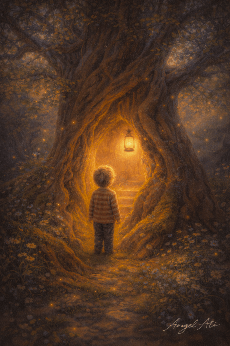 Where Wonder Learned to Stay is a collection devoted to the quiet magic of childhood — the kind that lives in forests, in soft fur, in curious eyes, and in small hands reaching toward something glowing.